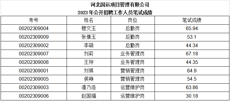 根據《滄州市安居集團有限公司2023年度招聘公告》。于2023年9月14日對符合筆試資格條件的人員進行了筆試,現(xiàn)將筆試成績予以公示。