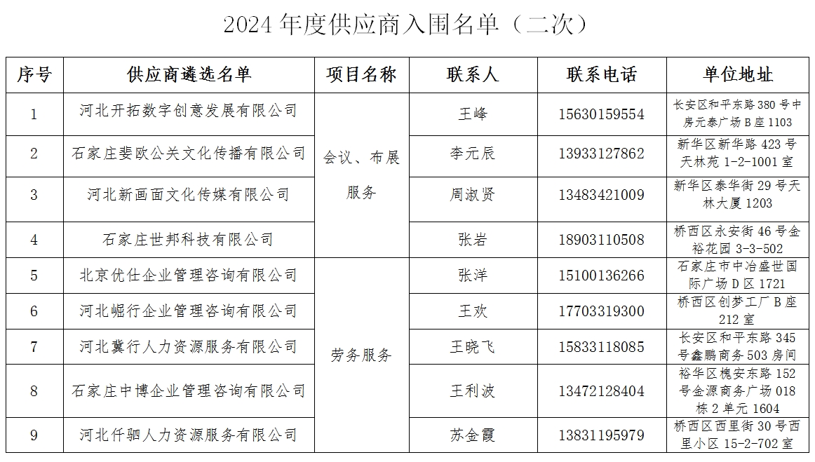 2024年度供應(yīng)商入圍名單(二次)
